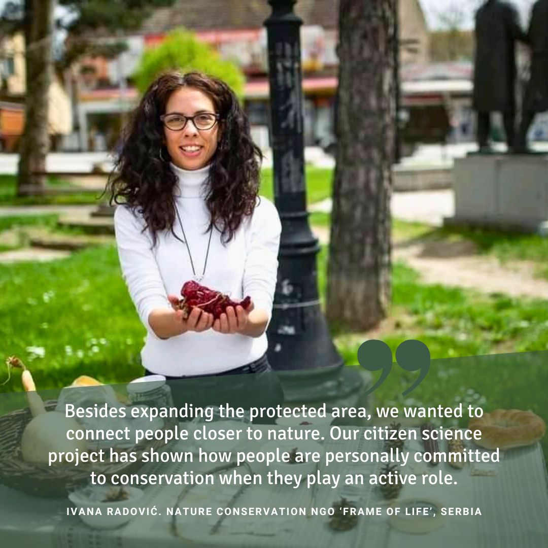 Ivana Radović, a PhD in agriculture at the University of Belgrade, founded the NGO Ecological movement ‘Frame of Life’ with experts from agriculture and biology to promote agrobiodiversity and nature conservation. This NGO has received a Citizen Science grant from the EU-funded Impetus project with their project ‘CITIZENS for SDG15.1’ to provide data-based recommendations for the need to expand the protected area of the “Monument of Nature Ribnica” ecosystem. In our interview, Ivana explains how the project not only contributed to SDG 15.1, which aims to conserve and restore terrestrial and freshwater ecosystems under the heading ‘Life on Land’ (SDG 15). It is also still helping to reconnect people in the region with nature.