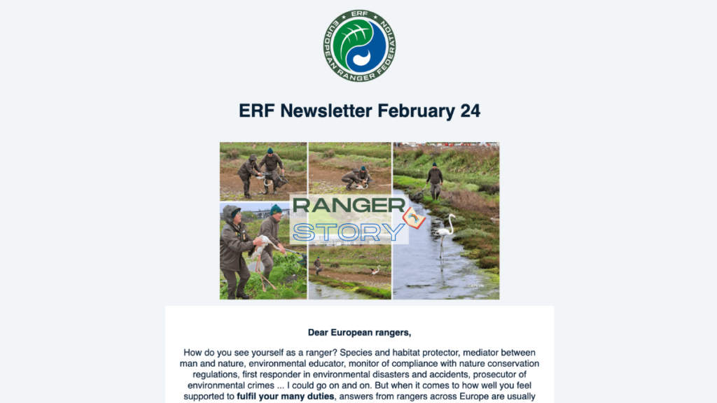 February also had its ranger stories: We look at Portugal, where rangers rescued a flamingo that was in danger of starving to death because it had swallowed a fishing line. Lifesavers, habitat and species conservationists, environmental educators and more: It’s all of your stories from daily ranger work we want to share to show why rangers deserve all the support of the society – especially the little stories from daily work.