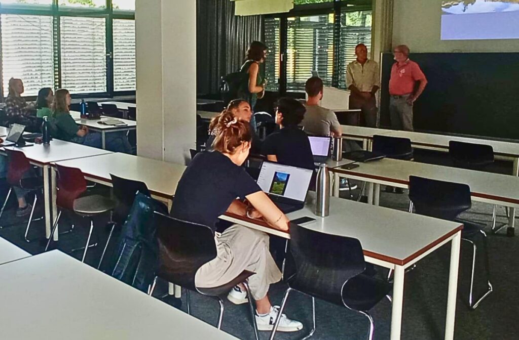 Franz Moder leads a seminar for students on Master’s degree courses such as geoecology, global climate ecology and landscape ecology. As a lecturer at the University of Bayreuth, Germany, and owner of the nature conservation and landscape planning office OPUS, he welcomed this lecture offer from Michael Großmann, ERF Finance Officer, accompanied by Maria Gurscaia, ERF Secretary, as a great inspiration for his students: