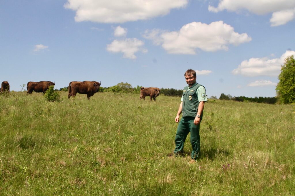 As a small child, I often went to the field with my grandfather, who was a shepherd, to work with animals, especially sheep and cows. I loved livestock and wildlife. After studying biology, I wanted to become a ranger. But there are only 200 to 250 ranger positions in Hungary, so you have to wait a long time. So I continued as a PhD student. After I finished, I finally saw an advert for a ranger position. I gave it a go – and became a ranger in Őrség National Park almost eleven years ago. It’s my dream job! Our bison project started in 2017 and I got involved in 2019 when 90 hectares in my ranger district were designated as rewilding area.