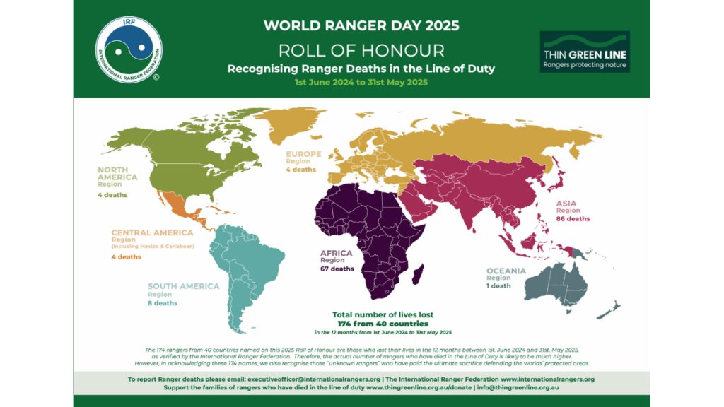 This year, there are more than ever before, as the President of the International Ranger Federation (IRF), Chris Galliers, states in his speech for this year’s World Ranger Day: 175 rangers, the highest number of rangers who have died in the line of duty ever reported to the IRF. The actual number is likely to be much higher.